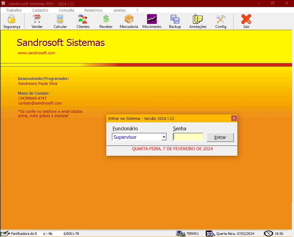 NOTA: ao abrir o sistema, será solicitado a senha de usuário, então informe esta senha provisória: 123456
